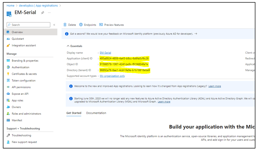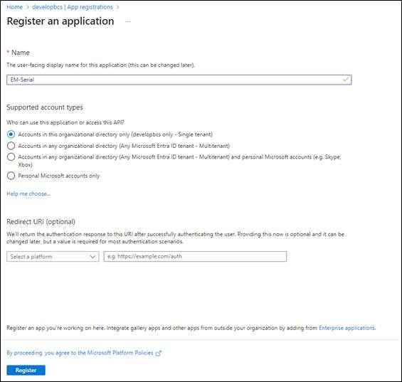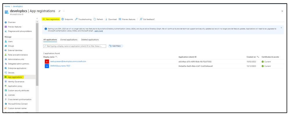 Registrace aplikace se provádí v Azure AAD (Entra).