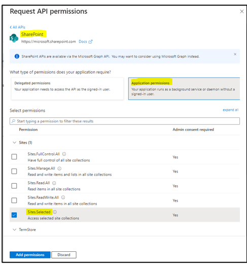 ·       Přidělení oprávnění registrované aplikace pro přístup ke zdrojům SharePointu