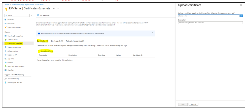 ·       Přidání vygenerovaného certifikátu, pomocí kterého probíhá ověření při komunikaci do SharePointu.