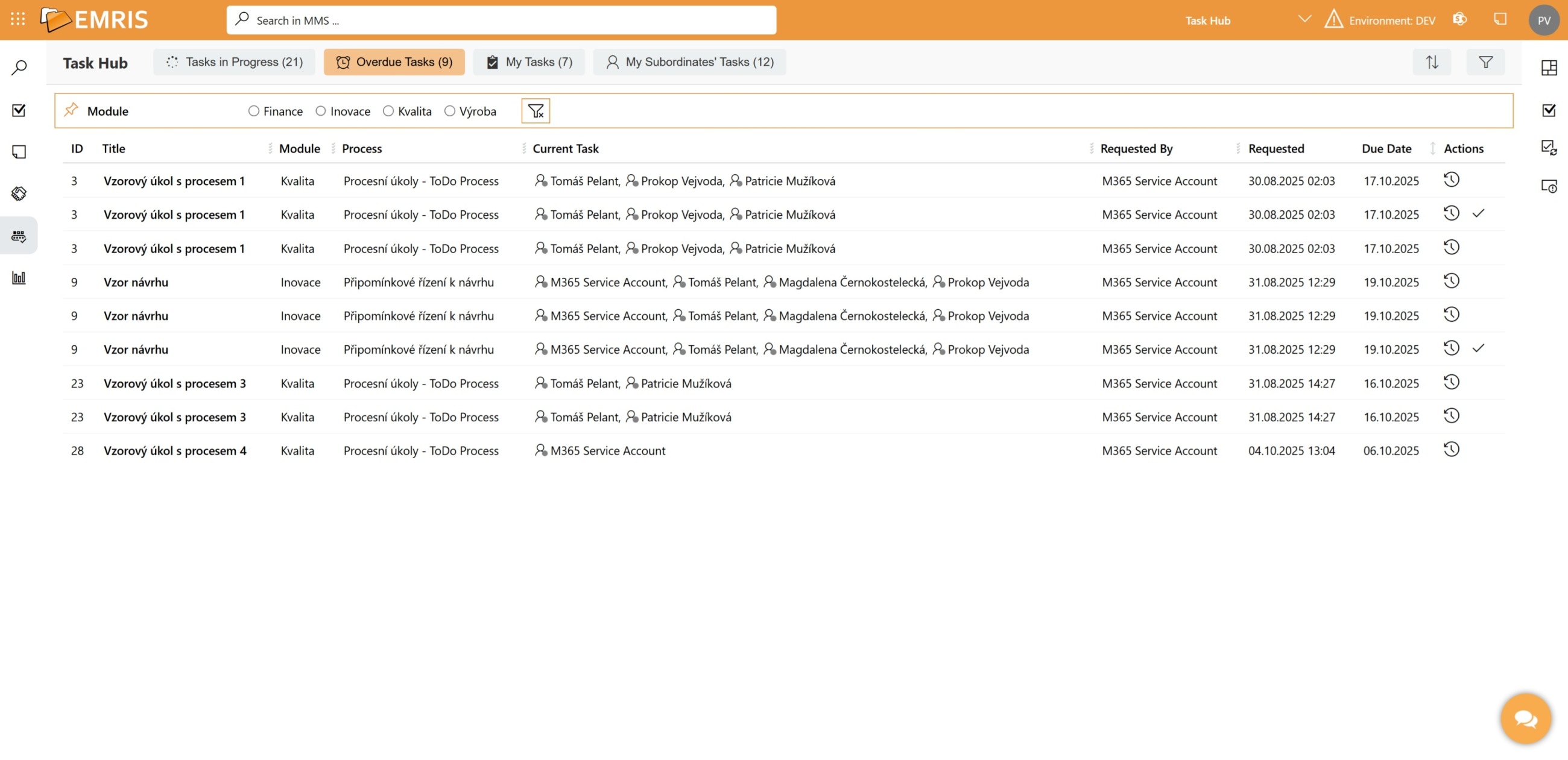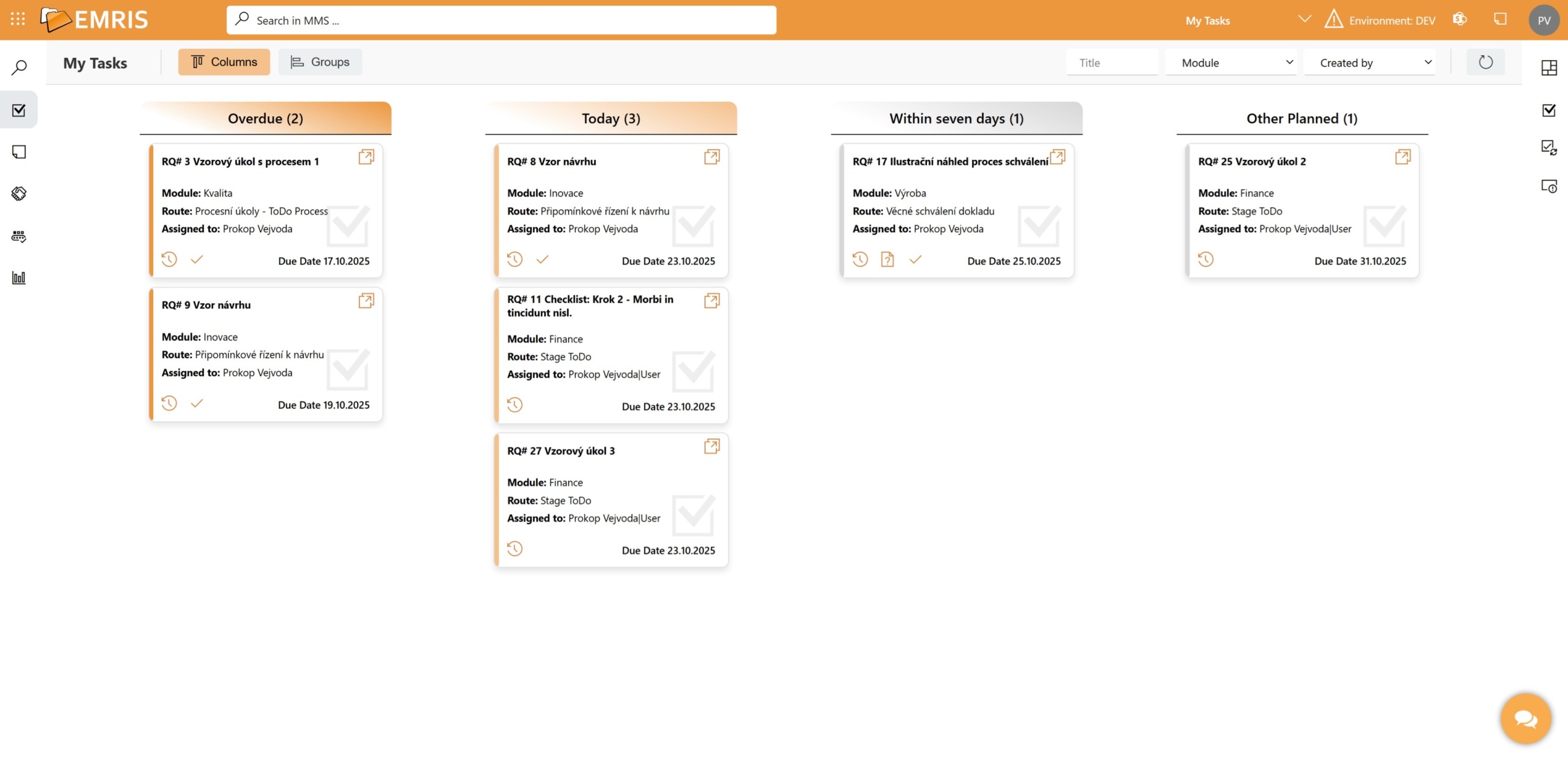 MMS sjednocuje požadavky, dokumenty a úkoly do jednoho systému řízení podle odpovědností.