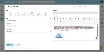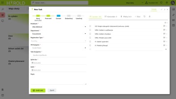 The HR manager manages requests for new employees, transfers or training, maintains records of employment documentation and provides signatures and audits. The process starts with the request (e.g. recruitment), continues with budget approval, implementation and closing the agenda.